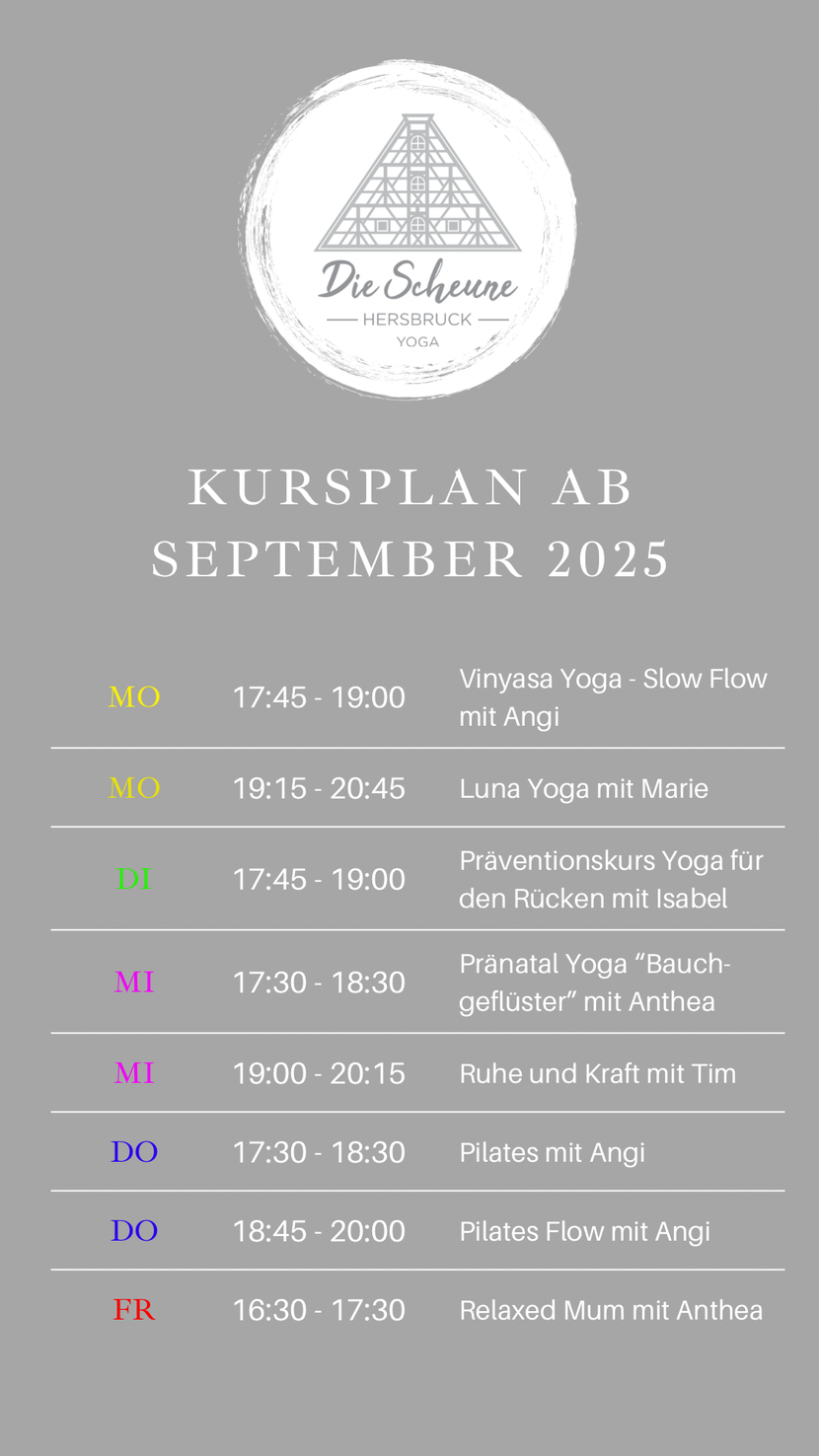 Ab 18.09.25 gibt es einen neuen Kursplan in der Scheune!